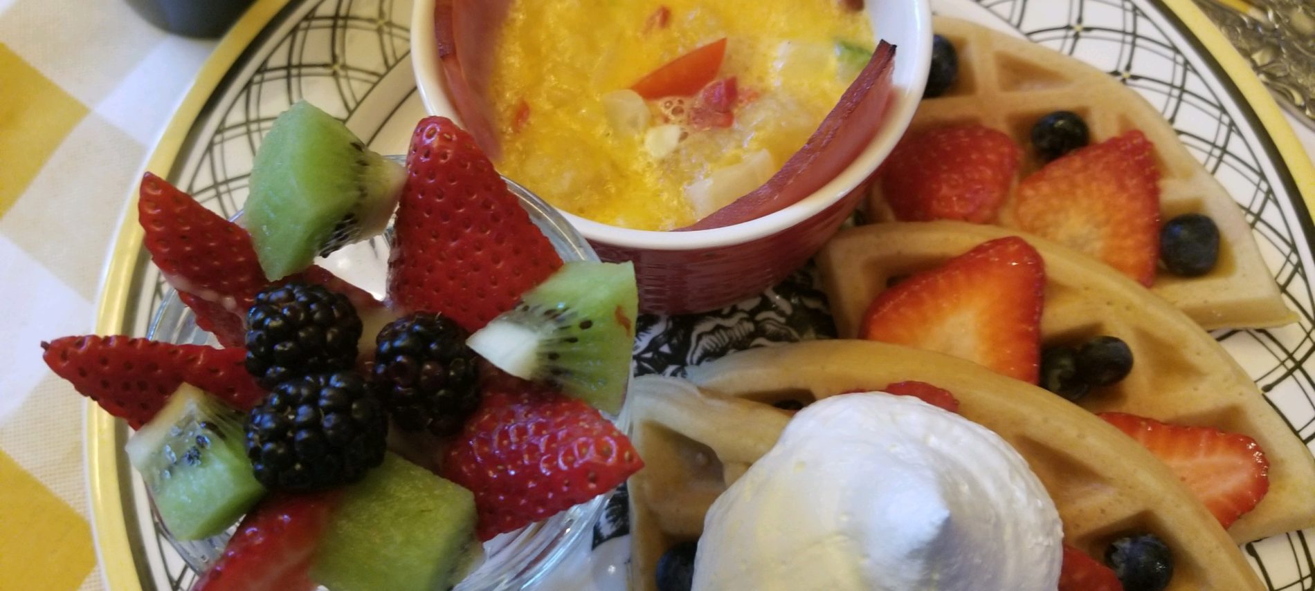 It’s the season for a sunny Ham Blossom breakfast casserole along with your red, white and blue waffles drizzled with our famous Vanilla Butter Sauce! Wake up early to a cup of coffee on the porch with the birds (lots of Cardinals, Chickadees, Warblers, Titmouse, and occasional crow) while your waffle iron heats up. No frozen waffles here!