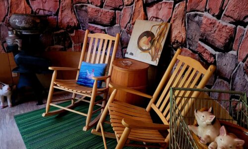 The iconic silo houses your private hot tub porch off the sitting room. Of course what would a porch be without rocking chairs.