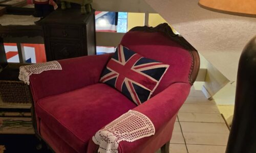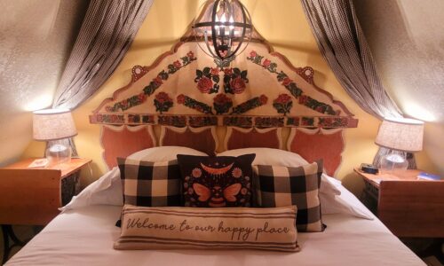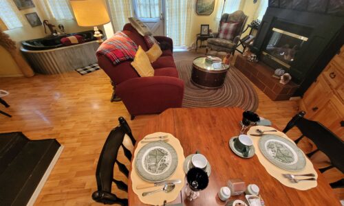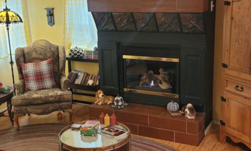 You might think Shakespeare when you turn the curve from the gate into the meadow and see the picturesque Meadowlark, an English country cottage with attached silo and 2nd story loft bedroom. As one guest described it, “Downton Abbey Country”. You can just imagine Tom and Sybil in their Downton Abbey estate cottage. Cedar shakes, tall gabled roof and a welcoming red front door greet you at our honeymoon cabin rental near Oklahoma City. Inside you’ll discover the royal family country getaway with sunflower yellows, cardinal red, English Garden green. (Hint: As you head up the stairs, a sign on the wall says “Laugh”).